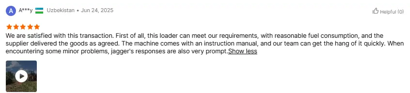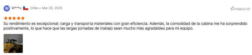 Ang customer mula sa Russia ay agad na kumuha ng isang test drive ng 5 ton loader matapos matanggap ito. Sinabi nila, "Ang loader na ito ay mas mapaglalangan kaysa sa inaasahan ko. Ito ay nagpapatakbo nang maayos nang walang anumang mga jolts." Ito ay kinumpirma din ng aming boss. At ang iyong mga tugon sa pagbebenta ay napaka -agarang at responsable. Ikaw ay isang mapagkakatiwalaang kasosyo.